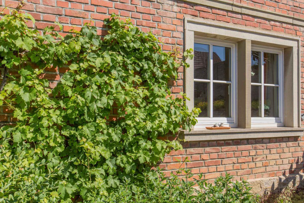- Fenster und Türen sollten vorzugsweise aus Holz hergestellt werden. In regionaler Expertise handwerklich verbaut, entsteht bei der Herstellung weniger Energieaufwand als bei Kunststoff- oder Aluminiumfenstern. Das Material Holz ist langlebig und verleiht Ihrer Fassade einen hochwertigen Look. Zweiflüglige Fenster mit Fensterteilungen machen optisch am meisten her und sind zudem praktisch beim Lüften und Putzen. Auch bei Neubauten können Fenster- und Türöffnungen durch Rahmungen oder Fensterläden gestalterisch betont werden.